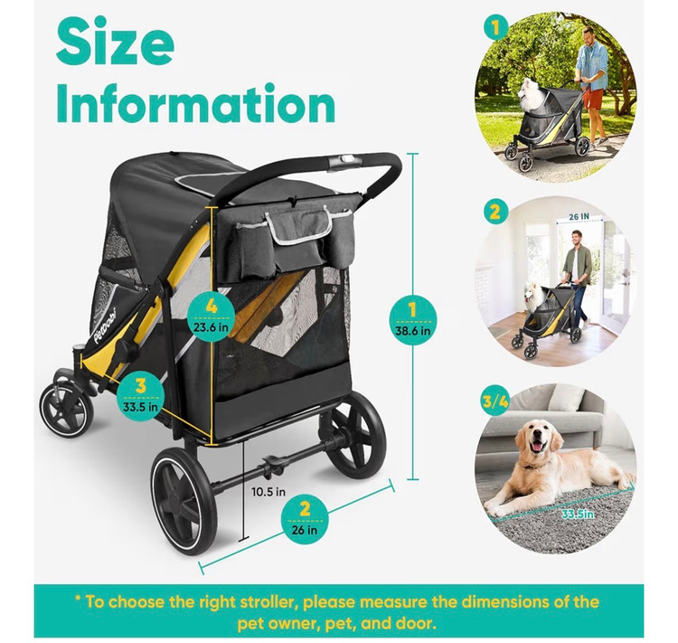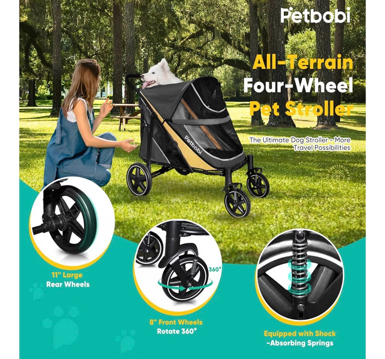 Petbobi Dog Stroller for Medium Dogs - Easy Fold Dual Entry Pet Stroller with One-Foot Brake, All Terrain Wagon Cart with Large Air Mesh, Ideal for Large Senior Pets up to 80 lbs, Black