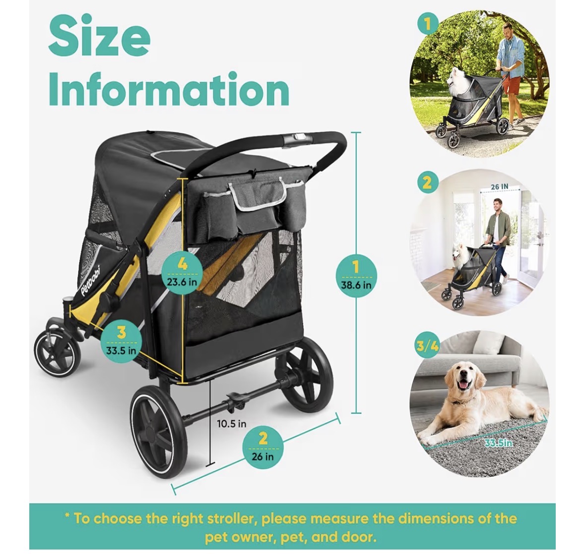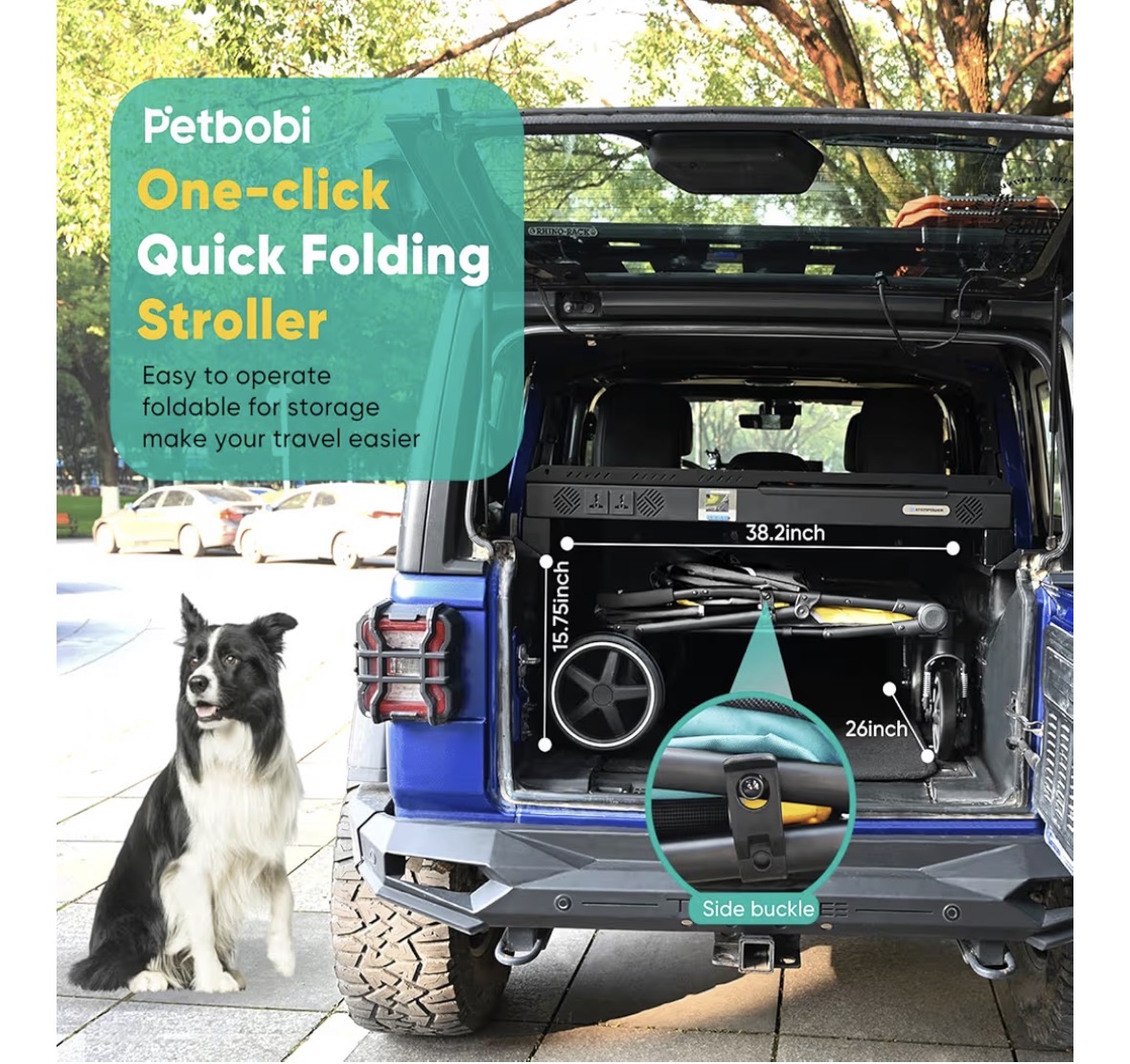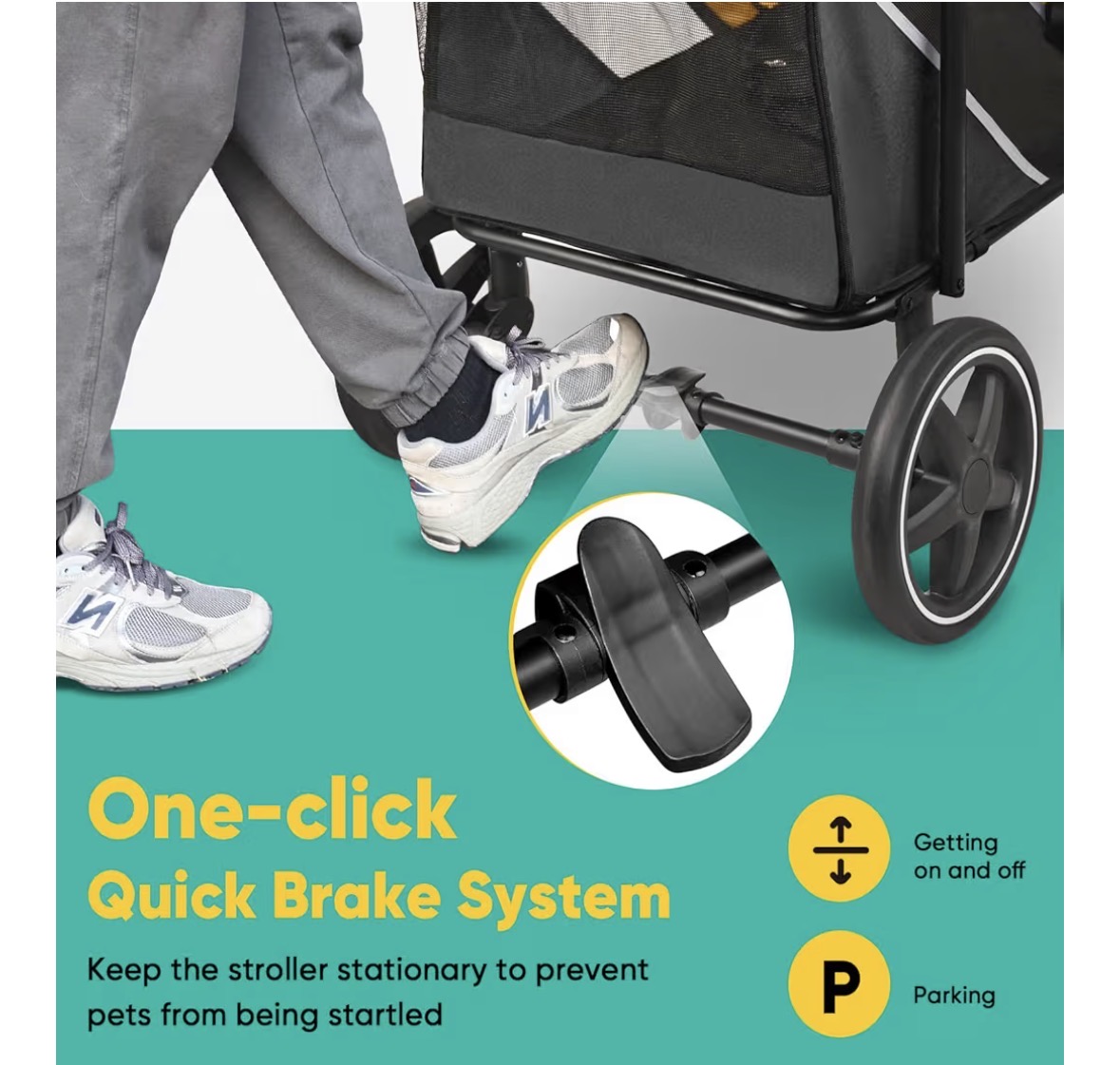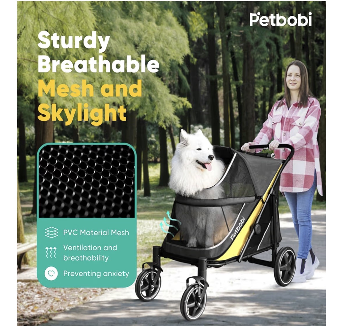 Petbobi Dog Stroller for Medium Dogs - Easy Fold Dual Entry Pet Stroller with One-Foot Brake, All Terrain Wagon Cart with Large Air Mesh, Ideal for Large Senior Pets up to 80 lbs, Black