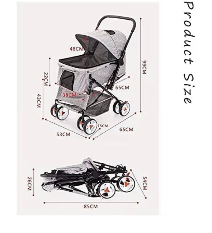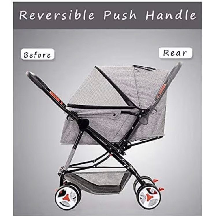 Pushchair Portable and Lightweight Stroller Dog Stroller for Medium Dogs,4 Wheel Cat/Dog Strollers Easy One-Hand Fold,Reversible Push Handle Dog Buggy Puppy &Kitten Carrier (grey)