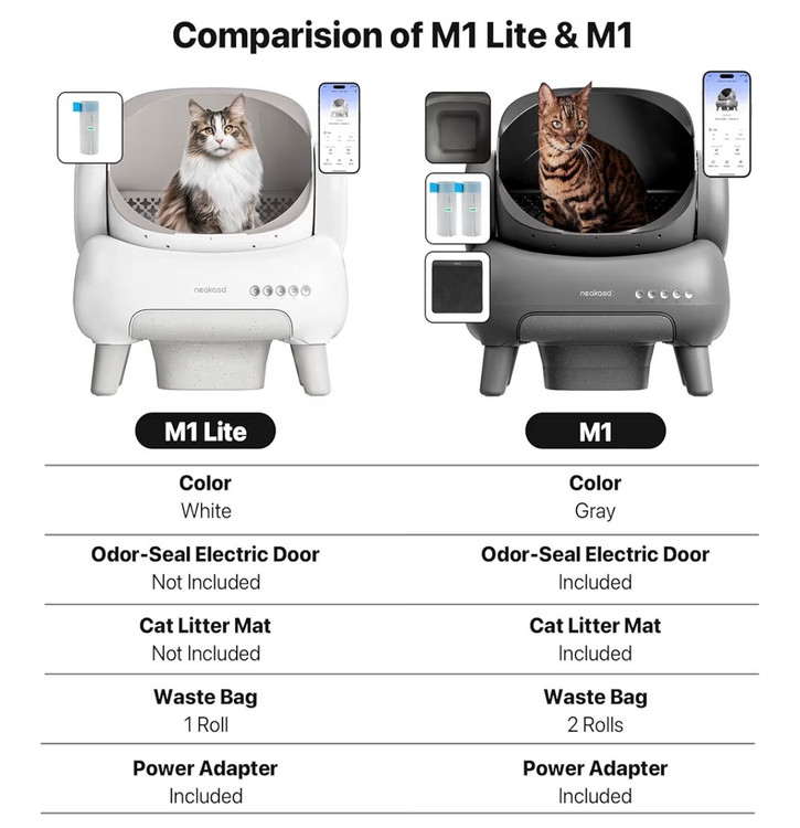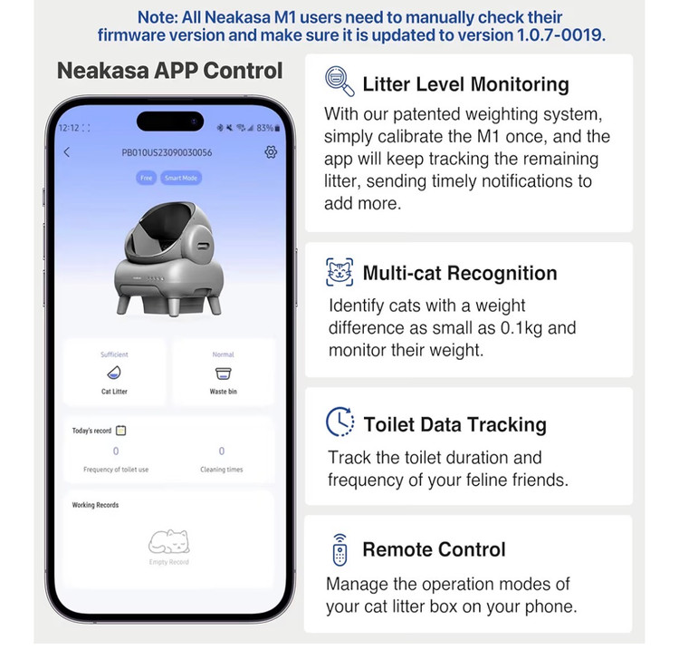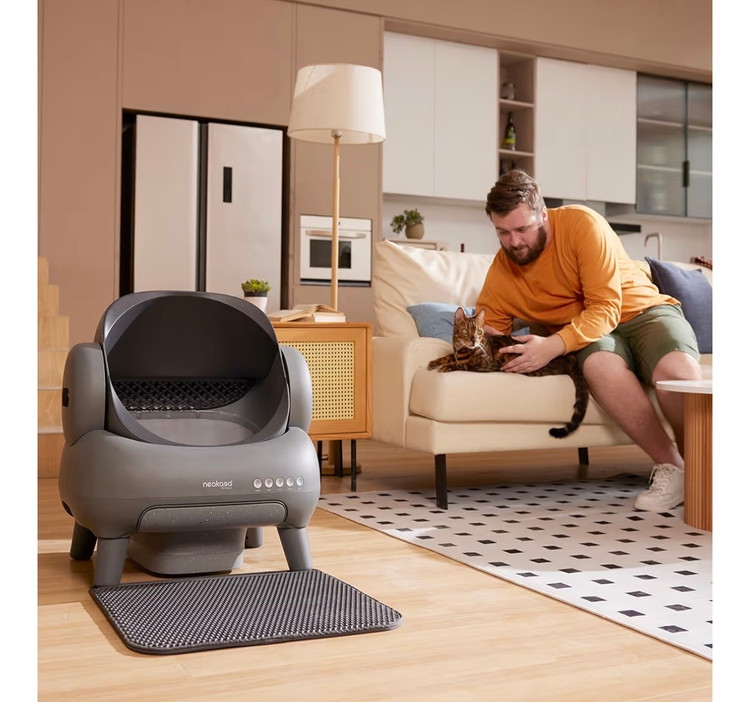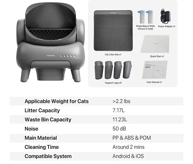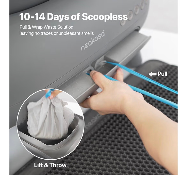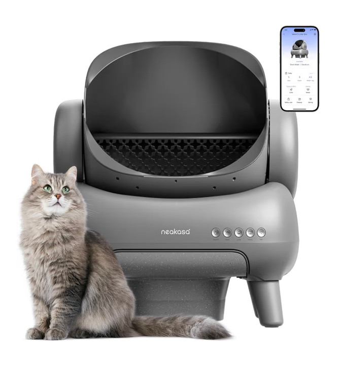 ظرف خاک گربه Neakasa M1 روباز و خود تمیز شونده، ظرف خاک گربه اتوماتیک با کنترل از طریق اپلیکیشن، دفع زباله بدون بو شامل کیسههای زباله دارای یوی و عطر افشانی خودکار و مناسب برای اموزش ادرار