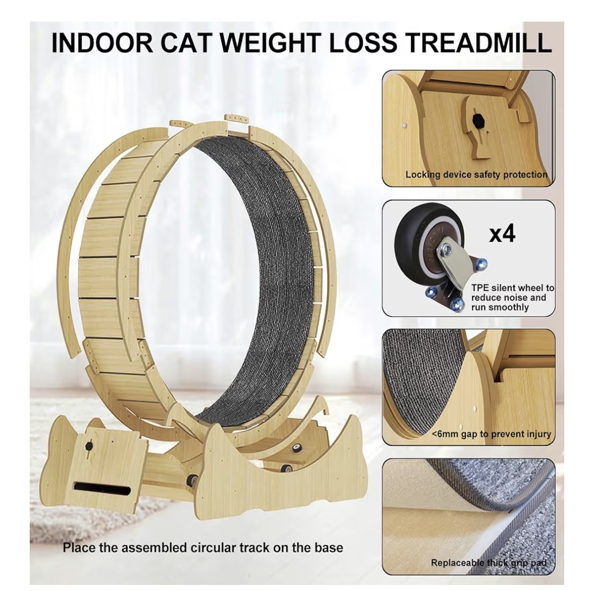 چرخ ورزشی گربه، تردمیل بزرگ و بیصدا برای حیوانات خانگی با باند موکتدار، چرخش اسباببازی بچهها برای گربههای داخل خانه، چرخهای ورزشی مخصوص گربه برای کاهش وزن (متوسط)
