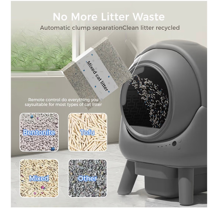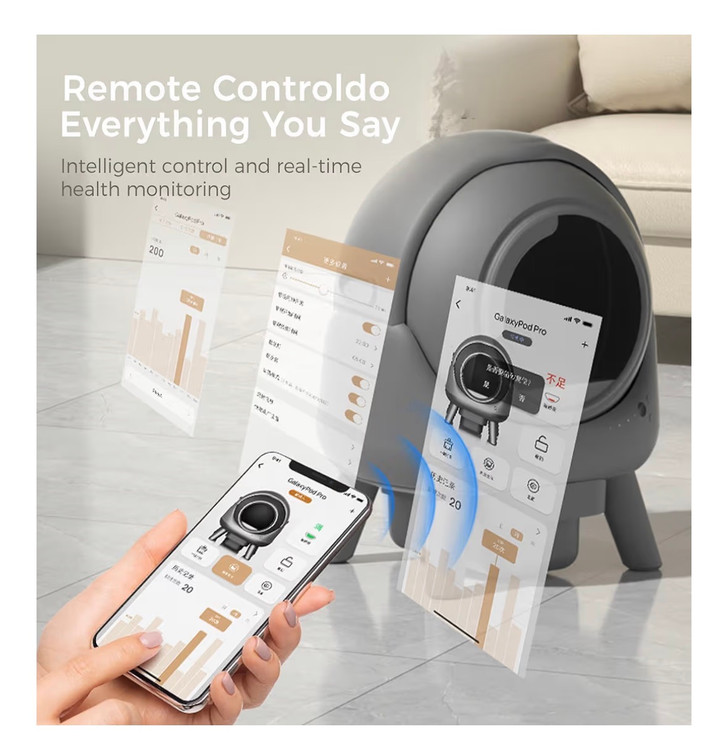 ظرف خاک گربه اتوماتیک NeoStyle، خود تمیز شونده با کنترل از طریق اپلیکیشن، دفع هوشمند زباله بدون بو و تمیز کردن آسان، طراحی ورودی عریض