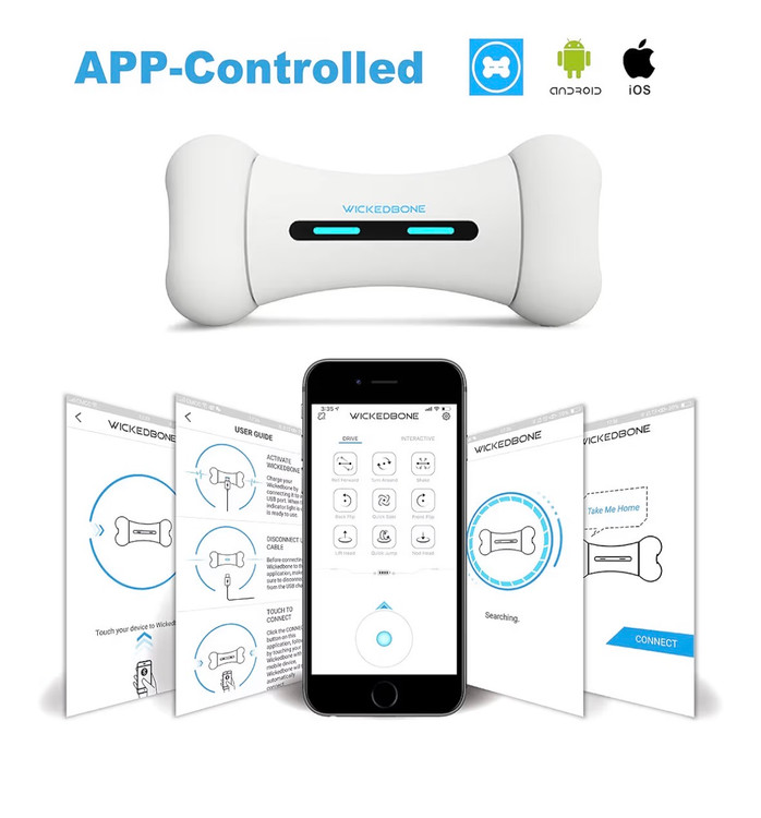 Wickedbone Smart Bone, Automatic & Interactive Toy for Dog, Puppy and Cat, App Control, Safe & Durable, Keep Your Pets Entertained All Day