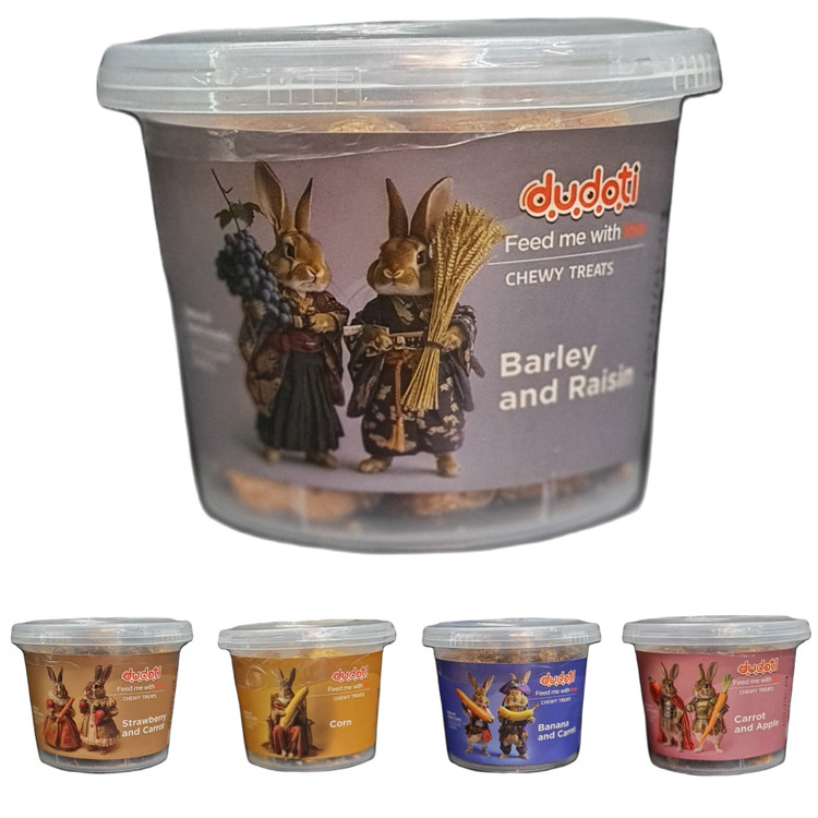 تشویقی های جونده دودوتی dudoti بدون مواد نگهدارنده و از مواد کاملا طبیعی و با کیفیت بسیار بالا تهیه شده است. از این تشویقی ها می توان به عنوان مکمل غذایی برای همه جوندگان کوچک (خرگوش، سنجاب، همستر و خوکچه هندی) استفاده کرد.