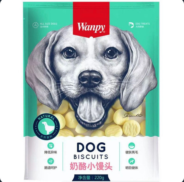 تشویقی بیسکویتی کوکی سگ ونپی با طعم پنیر و نخود وزن ۲۲۰ گرم