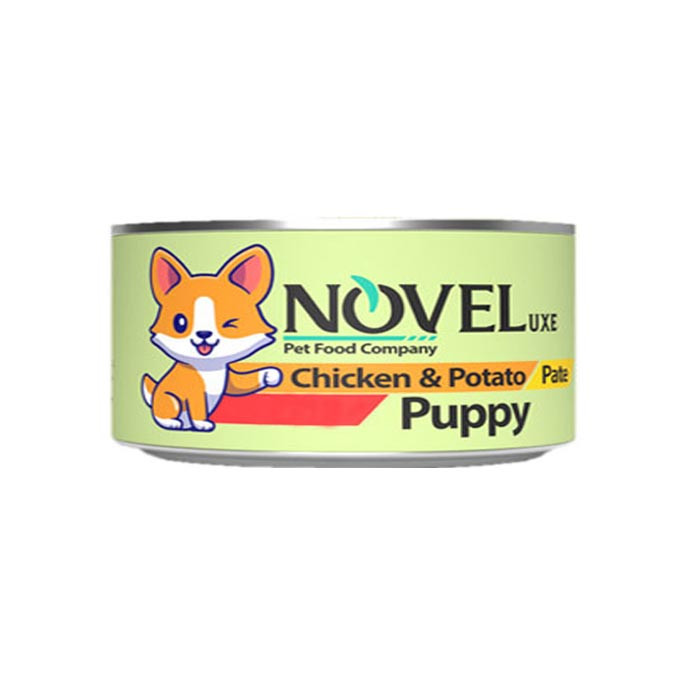 کنسرو توله سگ پته مرغ و سیب زمینی حاوی پته گوشت مرغ، دارای فرمولی بسیار غنی از پروتئین میباشد و به راحتی میتوان از آن برای تغذیه توله ها قبل از سن آشنایی با غذای خشک استفاده کرد.
