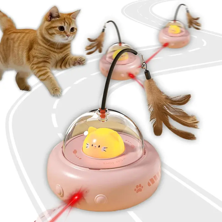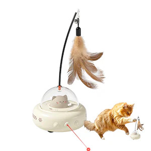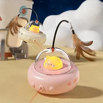 اسباب بازی گربه سفینه لیزر دار متحرک تجربهای بینظیر از سرگرمی و تحرک را برای گربه شما به ارمغان میآورد. این اسباب بازی گربه تعاملی از جنس ABS مقاوم ساخته شده. و دارای طراحی منحصربهفردی است که ترکیبی از حرکت خودکار، نور لیزر 360 درجه و پرهای نرم تصادفی را به پت شما ارائه میدهد. نور لیزر متحرک باعث تحریک غریزه شکار گربه میشود. و او را به تعقیب و بازی ترغیب میکند، درحالیکه پرهای نرم و متحرک، حس کنجکاوی گربه را برمیانگیزد و او را برای ساعتها مشغول نگه میدارد. این اسباب بازی به یک باتری قابلشارژ با رابط USB مجهز است که تنها در 3-2 ساعت شارژ شده و تا 12-8 ساعت بازی مداوم را تضمین میکند