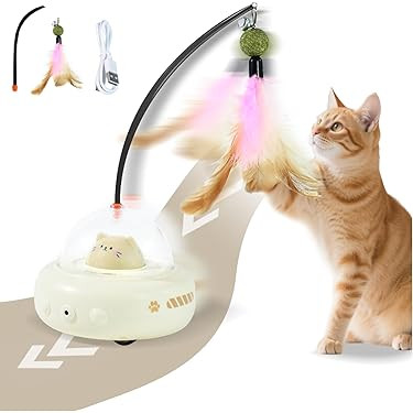 - مجهز به نور لیزر 360 درجه و پرهای نرم تصادفی برای تحریک حس شکار گربه