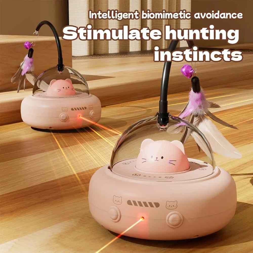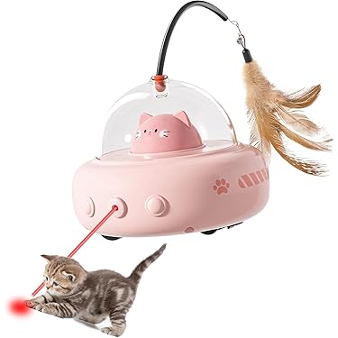 اسباب بازی گربه سفینه لیزر دار متحرک تجربهای بینظیر از سرگرمی و تحرک را برای گربه شما به ارمغان میآورد. این اسباب بازی گربه تعاملی از جنس ABS مقاوم ساخته شده. و دارای طراحی منحصربهفردی است که ترکیبی از حرکت خودکار، نور لیزر 360 درجه و پرهای نرم تصادفی را به پت شما ارائه میدهد. نور لیزر متحرک باعث تحریک غریزه شکار گربه میشود. و او را به تعقیب و بازی ترغیب میکند، درحالیکه پرهای نرم و متحرک، حس کنجکاوی گربه را برمیانگیزد و او را برای ساعتها مشغول نگه میدارد. این اسباب بازی به یک باتری قابلشارژ با رابط USB مجهز است که تنها در 3-2 ساعت شارژ شده و تا 12-8 ساعت بازی مداوم را تضمین میکند