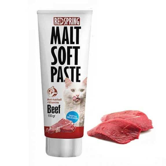 خمیر مالت گوشت گاو رد اسپرینگ یک خوراکی خوشمزه برای گربه است که به تنظیم سیستم گوارشی و حفظ عملکرد خوب آن کمک می کند. این محصول فوق العاده دستگاه گوارش سالم را تقویت می کند و به کاهش تشکیل گلوله های موی مضر کمک می کند. گربه ها بسیار سخت گیر هستند و هر روز خود را تمیز می کنند.